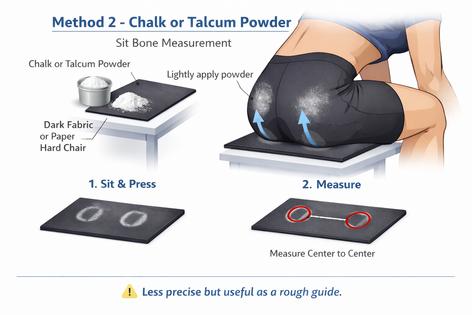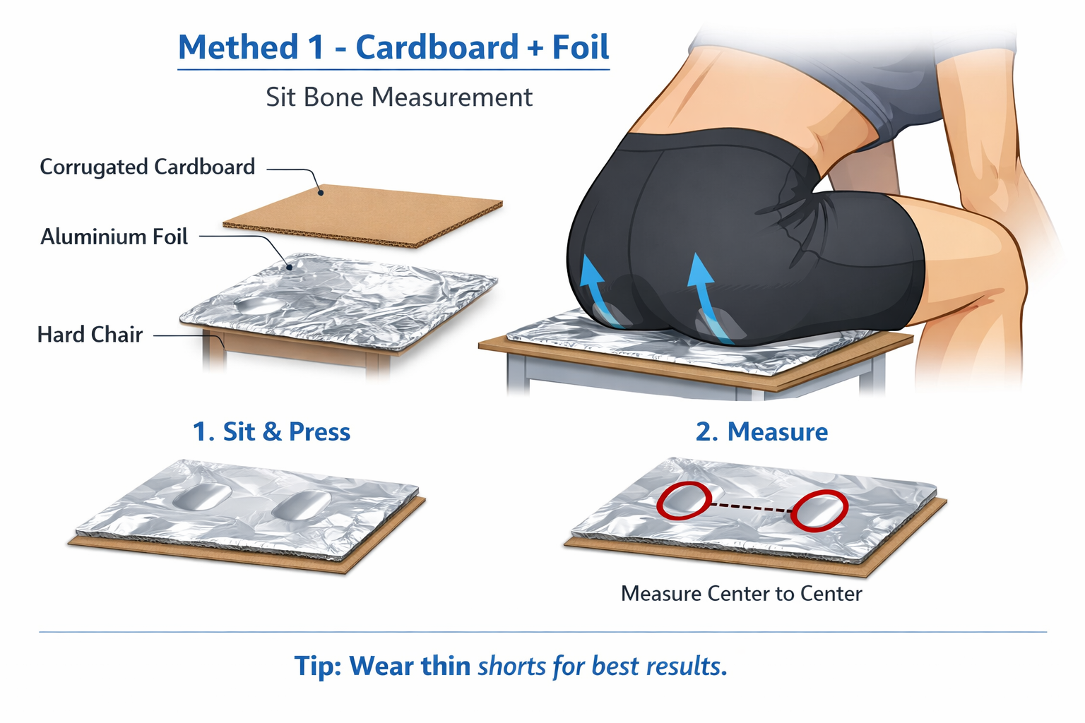 Below you’ll find several practical ways to measure your sit bones using common household items. For best accuracy, follow the primary method where possible, but the alternative options can still provide a useful estimate if materials are limited.